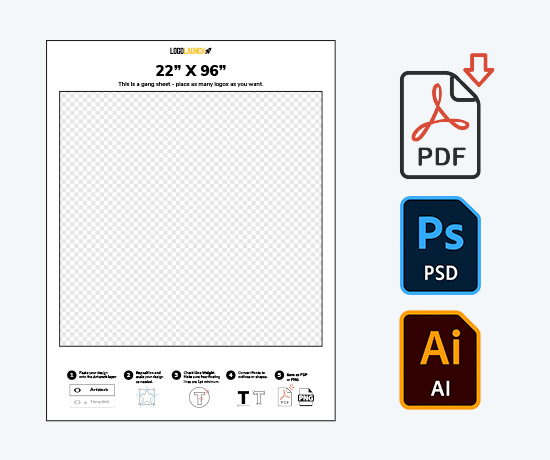 With our easy to use templates and guides, we have made art prep super easy with our templates. Simply choose the size transfer you like, and click the download template button. Or, download all templates with the button below. We have included templates for Illustrator, Photoshop and a PDF.